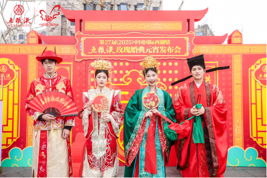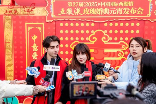 由杭州市委宣传部(市文明办)、宜宾五粮液股份有限公司、共青团杭州市委、杭州西湖景色名胜区办理委员会、杭州日报报业集团、杭州文明广播电视集团、杭州青少年活动中心主办,杭州市西湖情玫瑰婚典组委会承办的第27届(2025)我国世界西湖情五粮液玫瑰婚典元宵湖上发布会2月12日在西湖音乐喷泉水上渠道隆重举行。