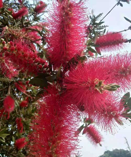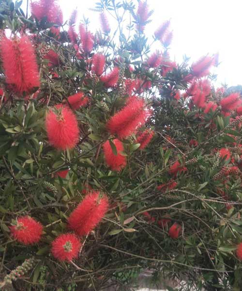 红千层归于热带花卉,花样特别美丽,花朵由一朵朵赤色小花组合而成,仔仔细细地调查,会发现它像瓶刷子,也有人叫它瓶刷子花或红瓶刷。它的花朵漂亮而梦境,花量极多还能坚持终年开花的姿势。