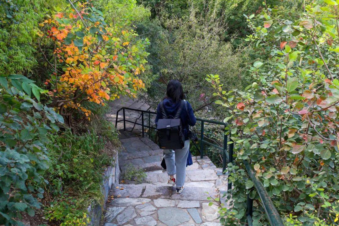 “登高专线”——挑选中路最为传统的登高道路,可在玉华岫、香雾窟等景区停步小憩,远眺南山红叶美景,在半山腰处转机到近北路的“天梯”道路,感触北山向阳而生的红叶更为美丽的颜色。