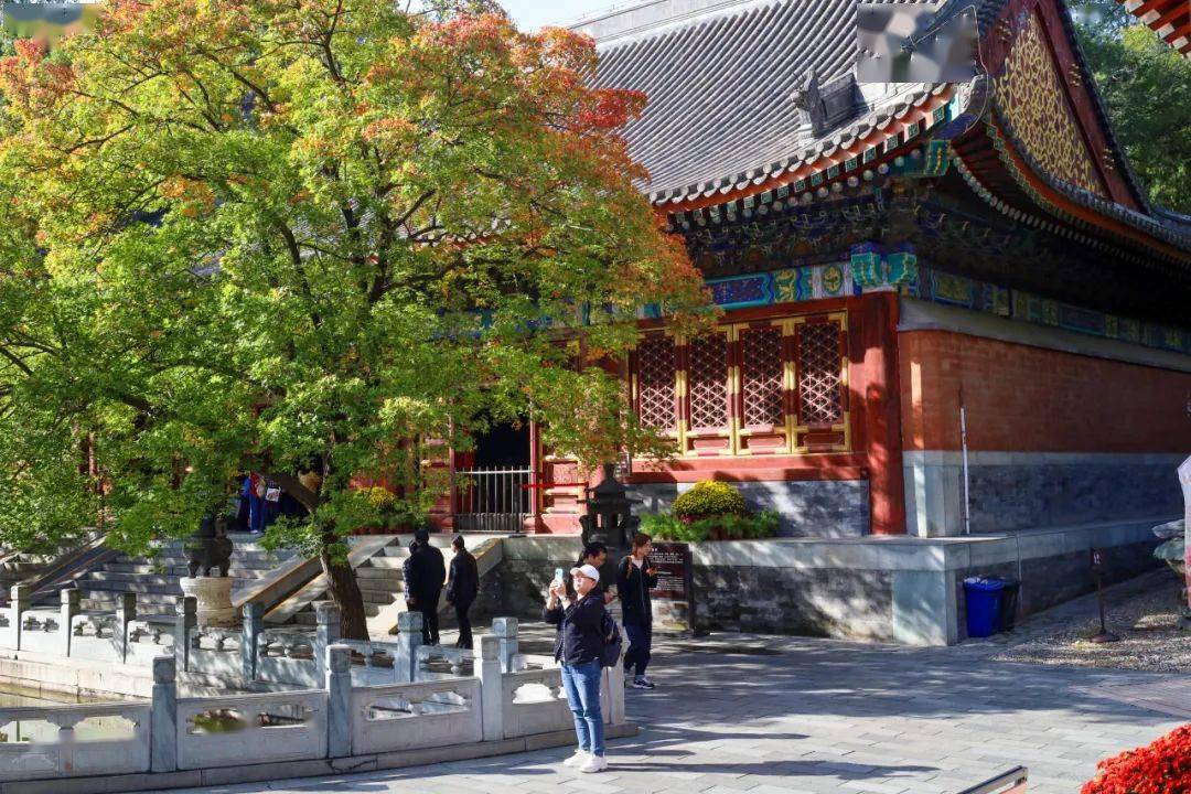 “清幽专线”——来到坐落公园北门外的碧云寺景区,远离园内熙攘的人群,看这儿红墙为布、地锦为台,陈旧的寺庙景区内巨大、金黄的银杏,衬着修建的一隅、衬着屋脊的角兽、衬着屋檐的瓦当,自带柔软安静的滤镜,分外古拙和清幽。